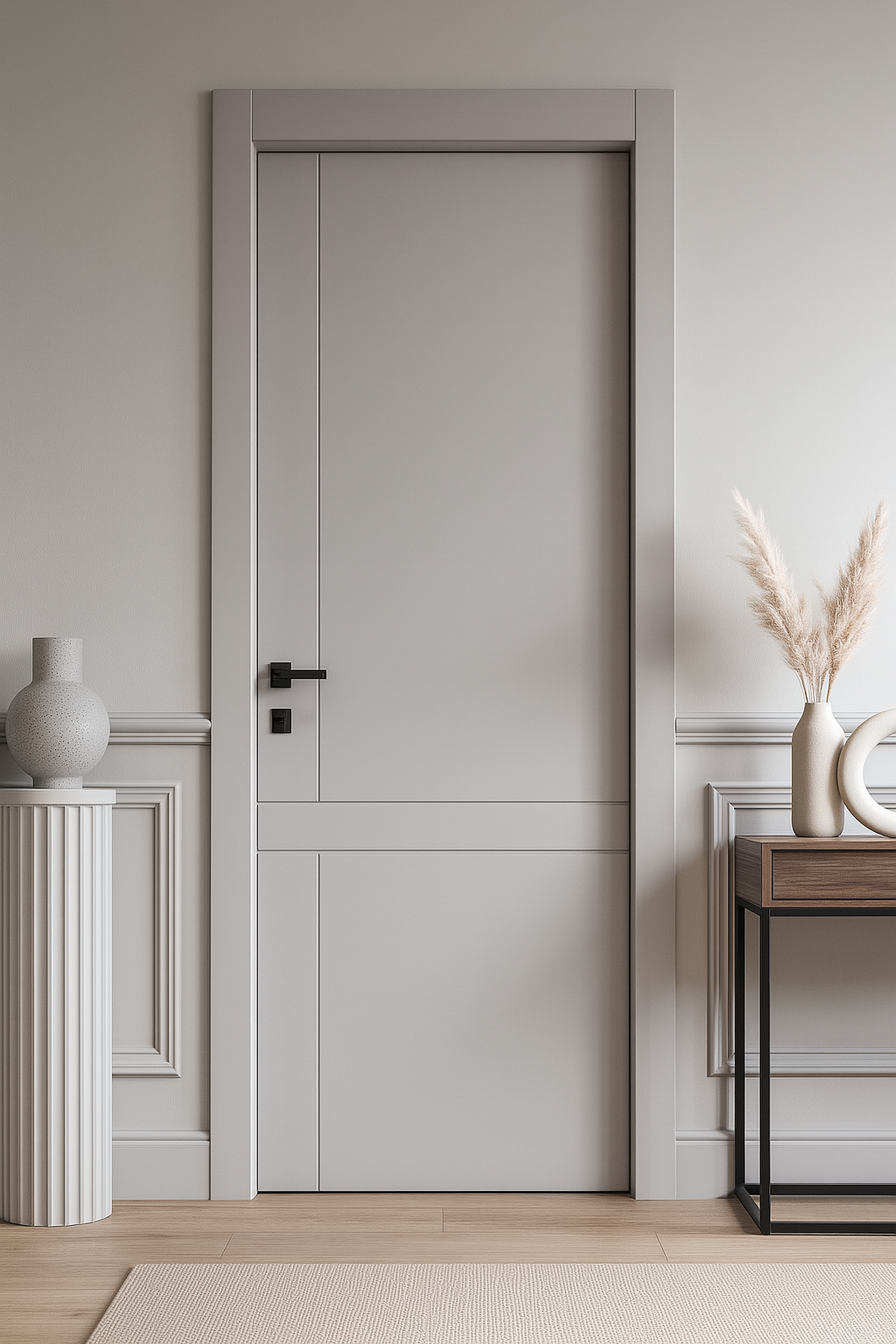 LK-MD-04, düz yüzeyi ve mat lake kaplamasıyla modern mekanlara uyum sağlayan, sade ve dayanıklı yapısıyla öne çıkan bir iç kapı modelidir.