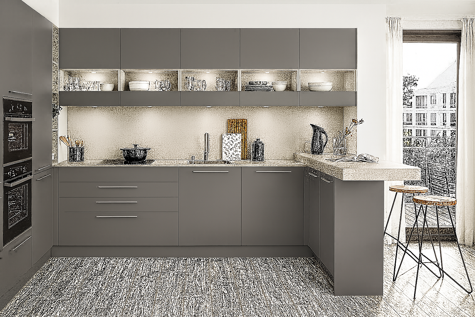 Bu modelde kullanılan mat panel kaplamalar, hem estetik hem de fonksiyonel avantajlar sunar. Parmak izi, toz ve leke tutmayan özel kaplama sayesinde dolaplar daima temiz ve düzenli görünür. Temizliği son derece kolaydır; nemli bir bezle silinmesi yeterlidir. Aynı zamanda UV ışınlarına ve çizilmelere karşı da dayanıklıdır, böylece mutfağınız yıllar boyunca ilk günkü görünümünü korur.